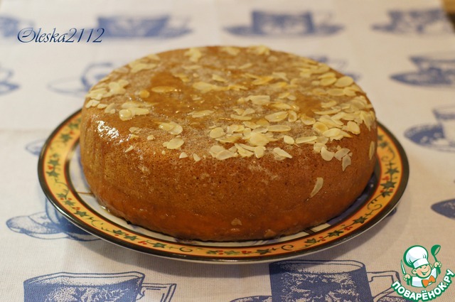 Пирог поливаем глазурью и посыпаем миндальными лепестками. Включаем режим "Выпечка" и выпекаем 30 минут.