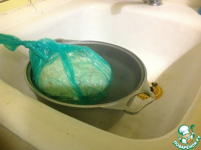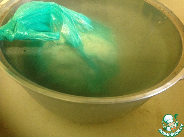 Тесто положить в пакет, завязать и опустить в кастрюлю с ледяной водой