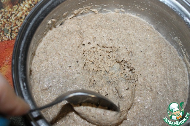 Рецепт закваски есть вот тут http://www.povarenok .ru/recipes/show/715 94/ Закваску я подкормила вечером ржаной мукой. Для ржаного хлеба нужна ржаная закваска. Вот она у меня готова к замесу, рыхлая, пористая, дышит