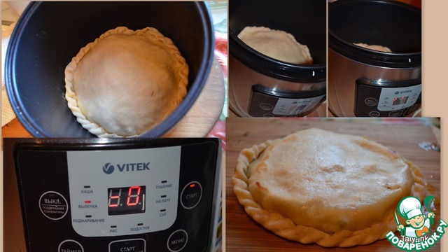Накрыть вторым кругом теста. Защипнуть красиво (как на чебуреки) края и положить в смазанную растительным маслом мультиварку Vitek VT-4210ВК