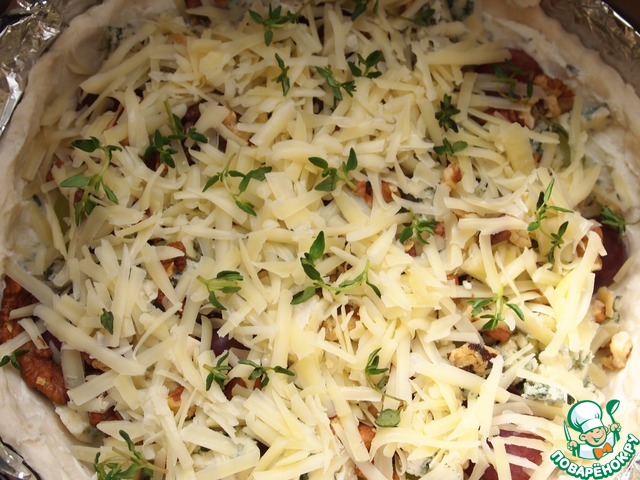 Затем добавить, натертый на крупной терке, сыр Маасдам.