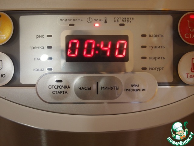 Включить мультиварку в режиме "печь" на 40 минут, при температуре 180 градусов.