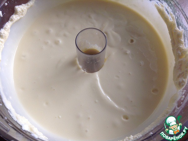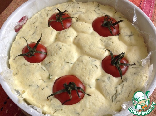 Выливаем в чашу сырную массу и погружаем в нее помидорки.