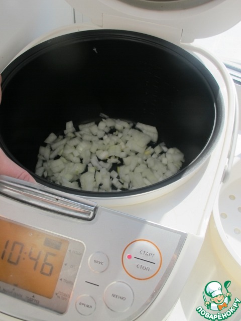 Лук обжарить около 3 -5 минут. На режиме "Малый объем".