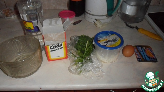 Для приготовления этой наипростейшей, но оригинальной запеканки нам потребуются: творог, яйцо, зелень, гашёная уксусом сода, мягкий плавленый сырок и соль по вкусу.