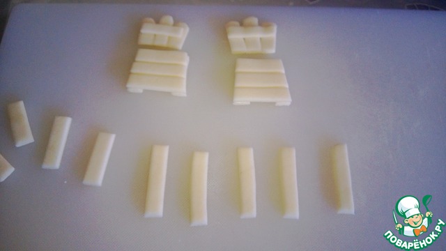 Изготавливаем мебель садовую. Белую мастику режем на полоски. И соединяем детали.