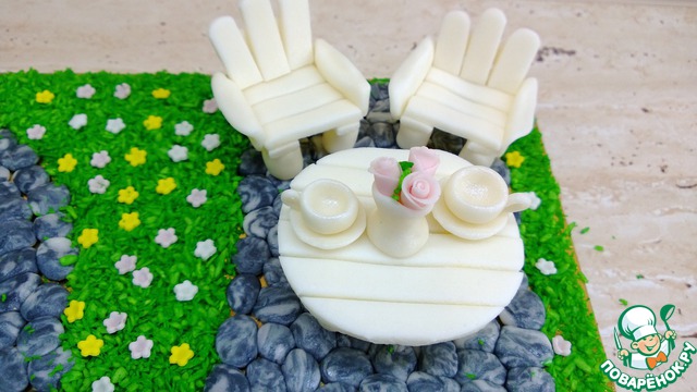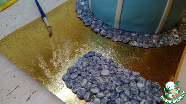 Делаем лестницу из мастики и покрываем кандурином.