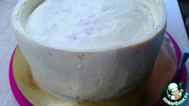 Покрываем торт бисквитом по периметру.