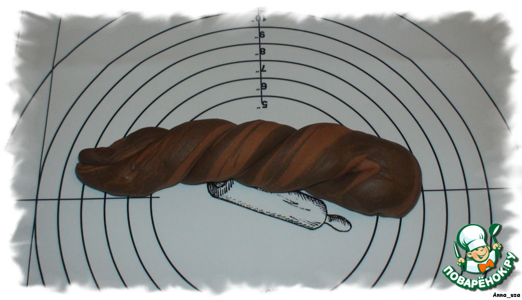 Теперь скручиваем эти две колбаски и складываем вдвое, скручиваем опять и ещё раз складываем вдвое. Делаем мы это для того, чтобы получить подобие деревянной поверхности.