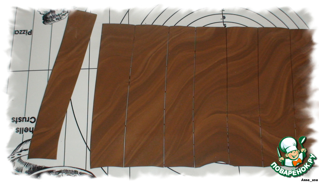 Измеряем высоту нашего торта и вырезаем "досточки", больше чем высота торта сантиметра на 4.
