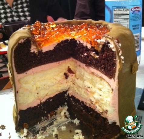 Вот, что нам понадобится. Сразу хочу сказать, что торт можно сделать любой, но он должен быть не слишком широкий и высокий, чтобы в итоге из него полyчилась кадушка или небольшая бочка. У меня 3 коржа: два - шоколадный бисквит и один - творожный (cheesecake). Диаметр коржей 17,5 см.