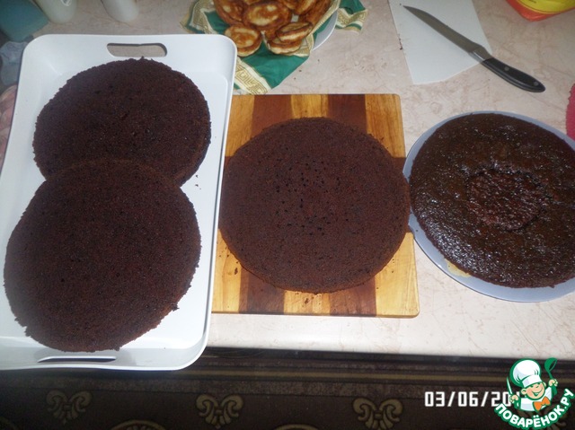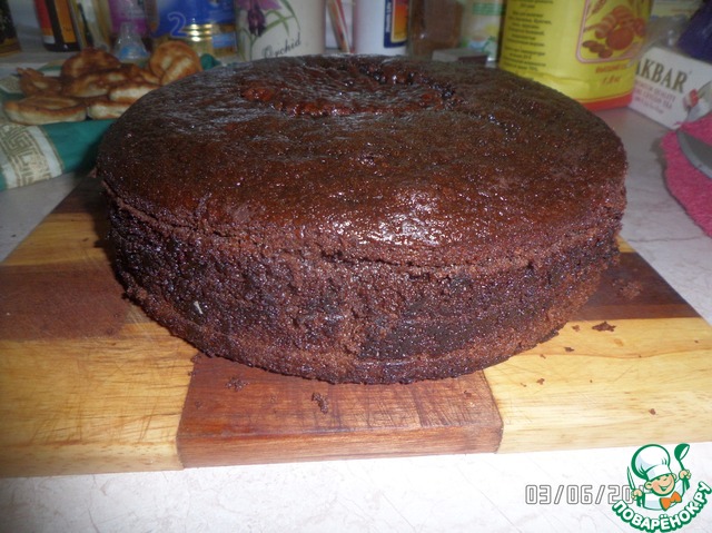 Выпекла бисквит "шоколад на кипятке", такой рецепт уже есть на сайте.