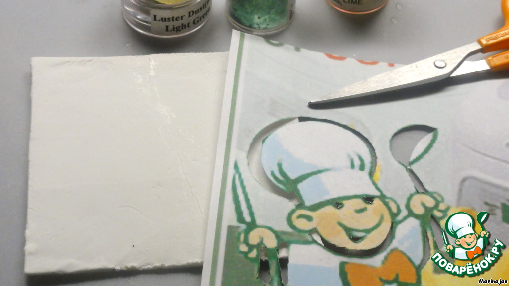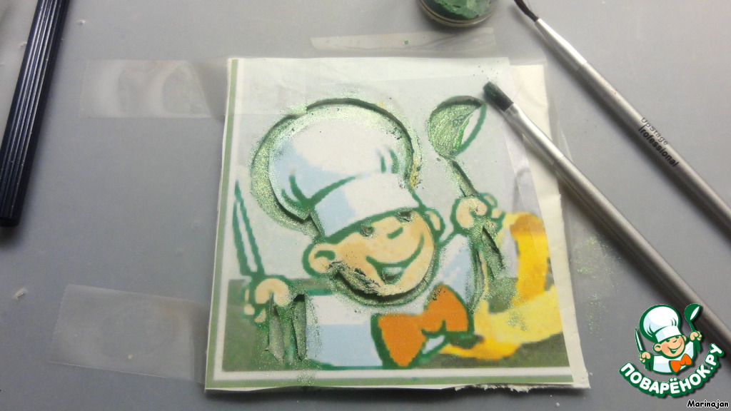 Делаем трафарет: я распечатала поваренка и вырезала контур.