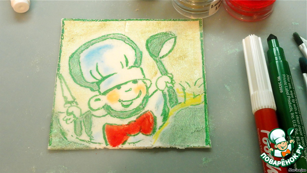 Обводим контуры, я пользовалась пищевыми фломастерами.