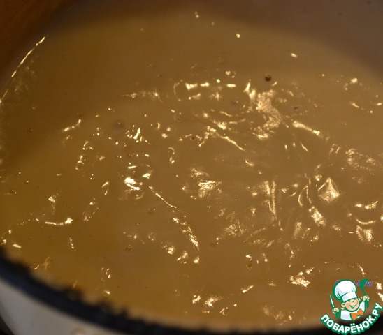 Мешать, не переставая, до получения однородной густой жидкой массы. Добавить сахарную пудру.