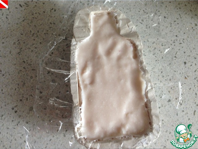 Займемся "коньяком". Из формы достаем нашу бутылочку. Она была в пищевой пленке, поэтому проблем не было. Выкладываем на решетку.