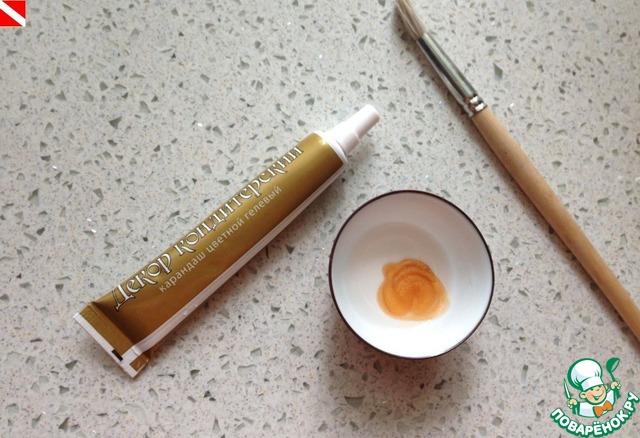 В небольшом количестве водки развела немного содержимого пищевого гелевого карандаша золотого цвета и кисточкой покрыла ткань. Почему-то на фото она не блестит (может свет не тот выбрала)