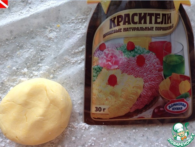 Белый кусочек мастики красим в желтый (а если есть золотой) цвет