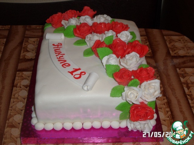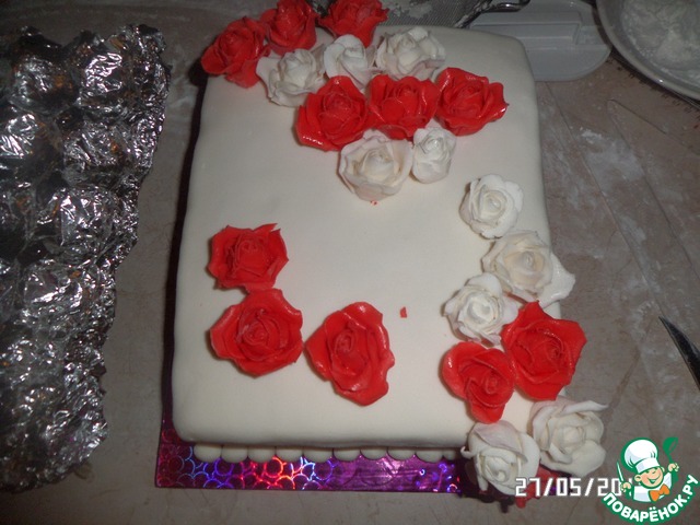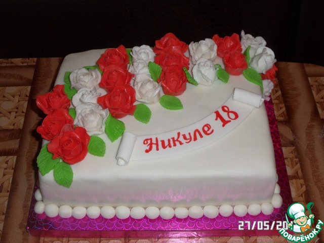 Торт с розами, украшенный мастикой