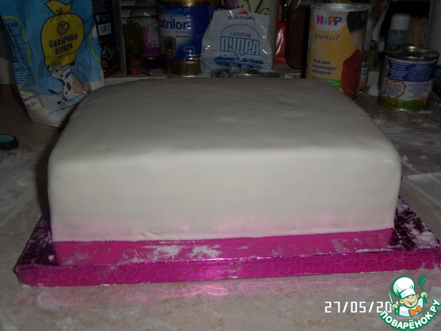 Покрыла белой мастикой.