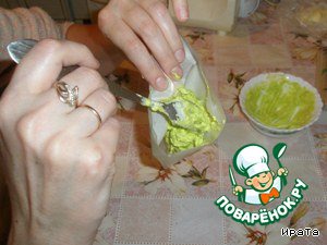 для листиков и стебля зелёный крем закладываю в бумажный корнетик.
