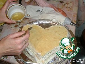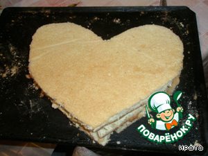 из готового бисквита вырезаем сердце