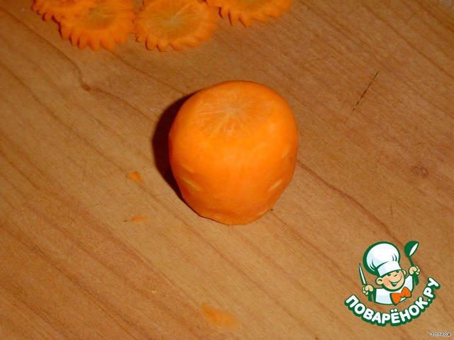1. Чистим морковь и делаем заготовку с равномерными бороздками