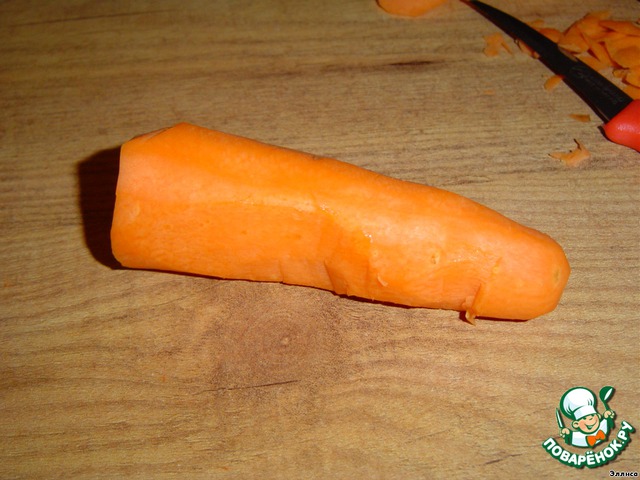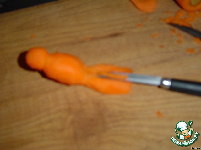 Обрезаем более толстую часть моркови, делая ее тоньше, и закругляем будущий хвост.