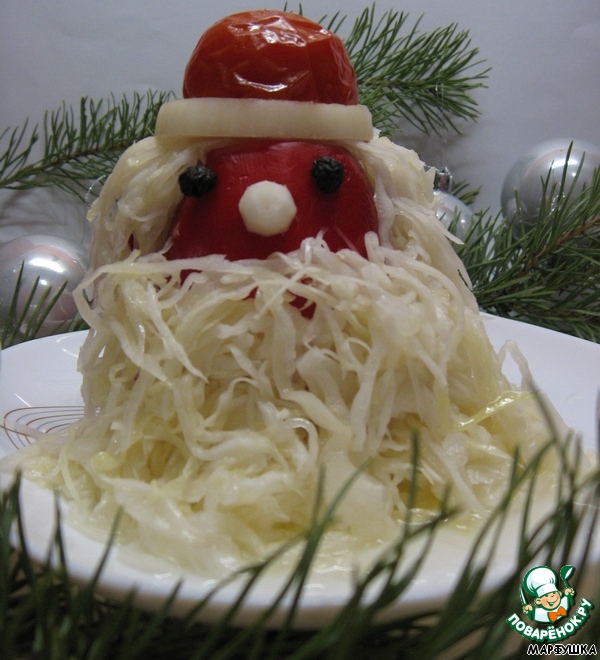Выкладываем капусту, имитируя бороду Деда Мороза.