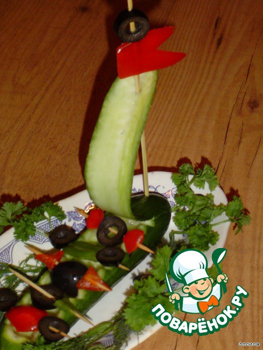 | Такой кораблик может служить украшением, а также может стать емкостью для индивидуальной подачи салата или закуски. |