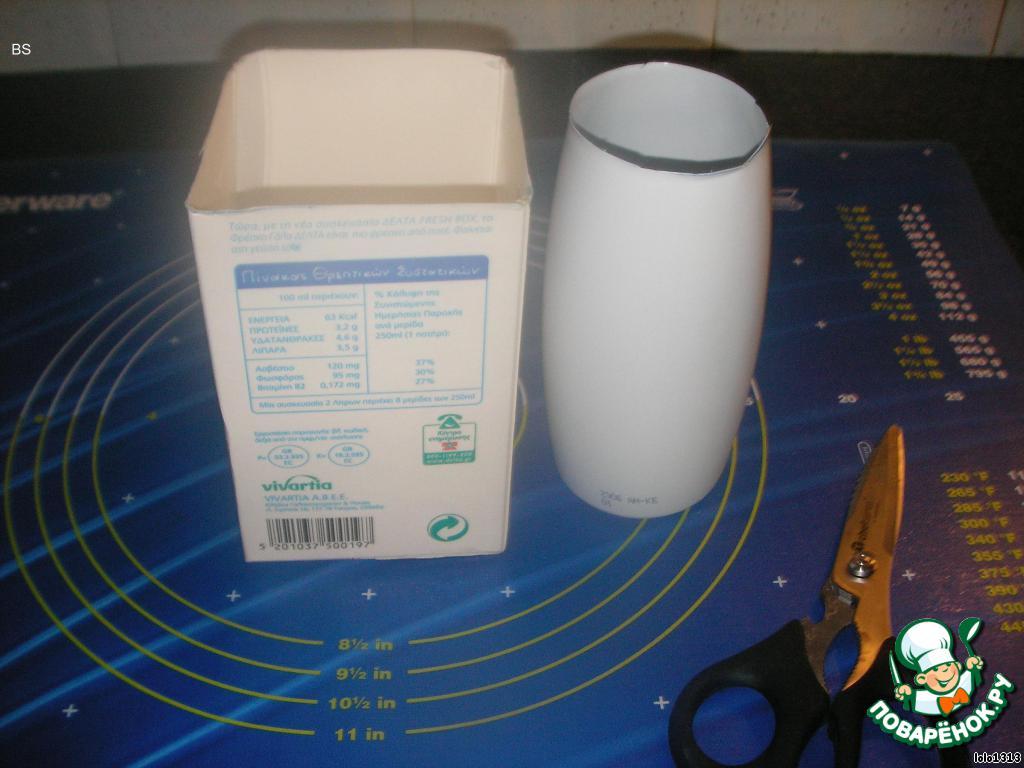 На упаковочках отметить ручкой линии среза, для ровности лучше измерить всё линейкой(упаковочки заранее хорошо промыть).