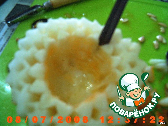 В этот цветок во внутрь положем мытые, высушенные семечки, смешанные с куркумой (она придала чуть желтизну).