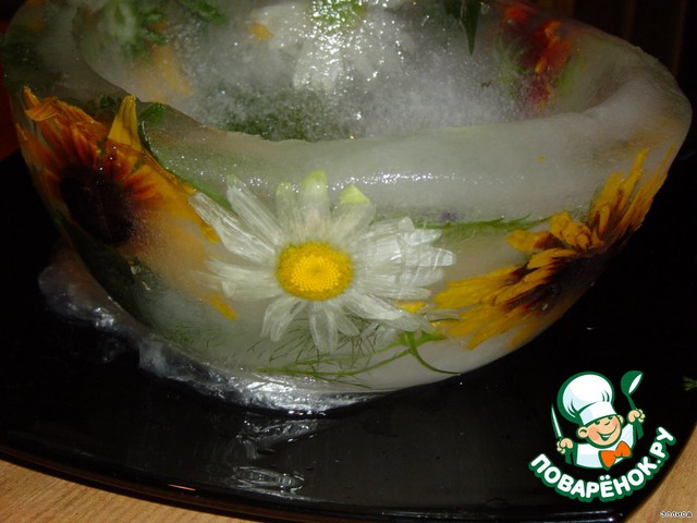 | Эту чашу я использовала для приготовления овощной закуски "Ледяной сюрприз". Хочу показать вам процесс изготовления чаши. Заходите, и мы вместе из воды и цветов сделаем настоящее чудо!!! |