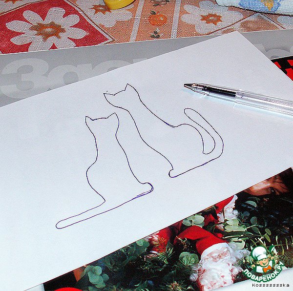 Кладем на гладкую сторону вырезанную фигурку, обводим кончиком ножа и вырезаем. Если есть навык, то Котика (с белым шоколадом такое не пройдет) вырезаем, как из мягкого дерева, сглаживая ножиком контуры фигурки.