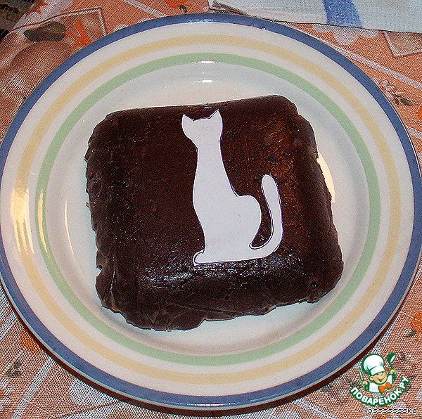 Выкладываем шоколад, разравниваем. Для Кошечки надо делать потолще. Накрываем пленкой и в морозилку на часок.