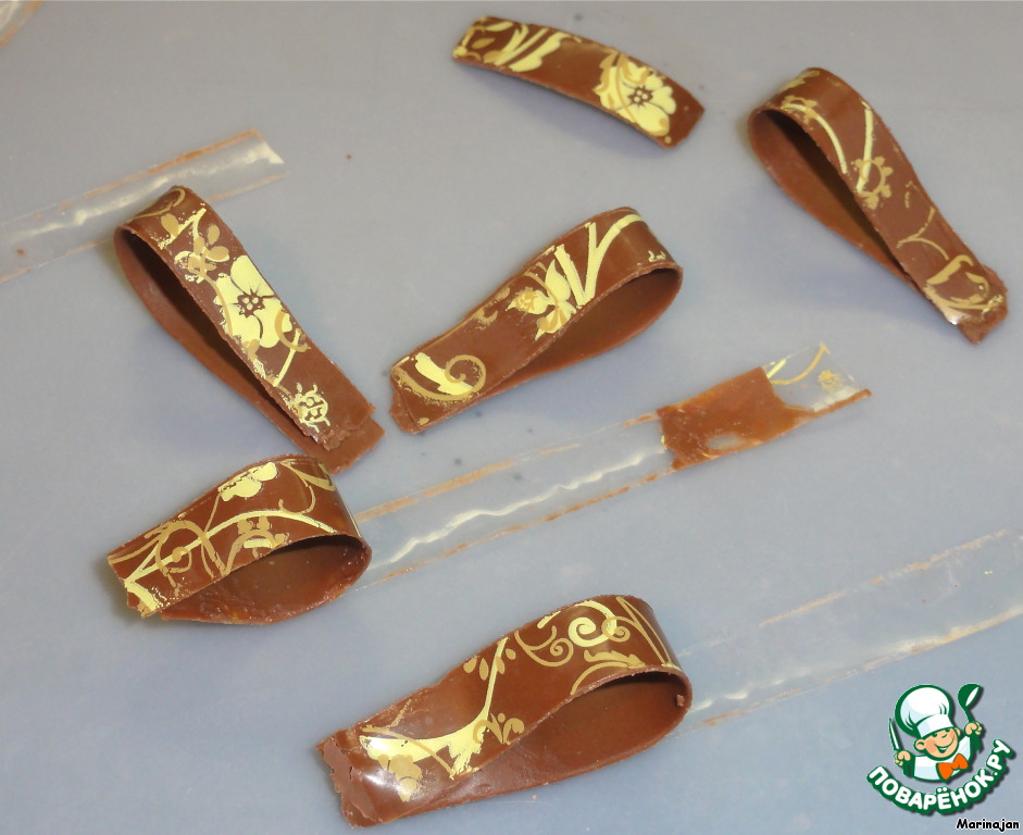 Загнуть, придав желаемый изгиб и затем, поместить плёнку с шоколадом в холодильник.