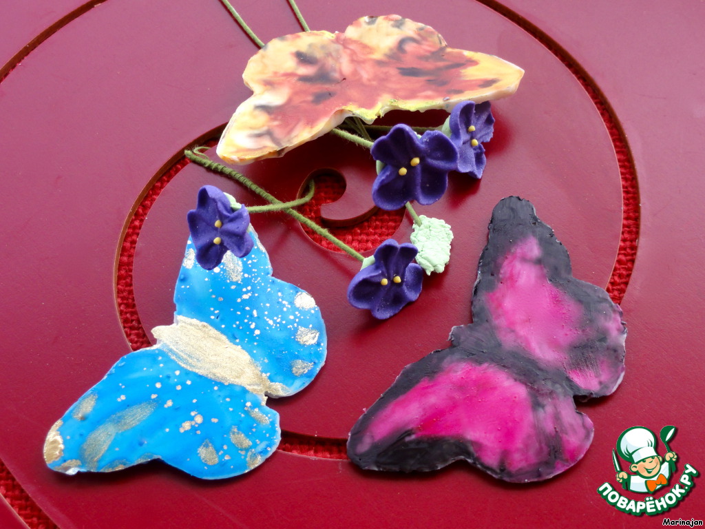 нанесены различные рисунки из какао-масла и пищевого красителя.
