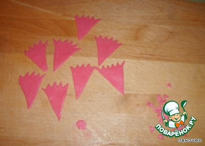 Из некоторой части обрезок, слепить небольшую лепешечку, на которую будем крепить все лепестки.
