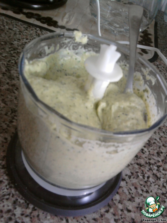 Делаем соус, он же маска для лица. Для него подойдет сметана и любая зелень. Я взяла зеленый лук и укроп. Соус у меня получился жидким, поэтому я еще добавила вареного картофеля.
