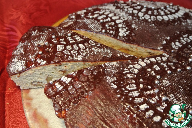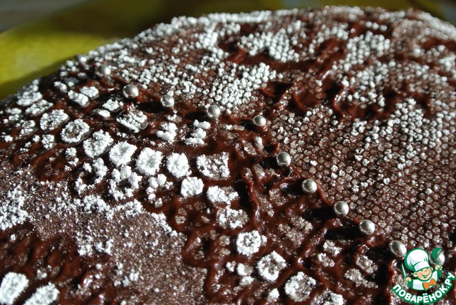 | При помощи кружевной, резной пластиковой салфетки, шоколадной глазури, сахарной пудры и сладких серебряных бусинок можно очень легко изящно украсить выпечку. |