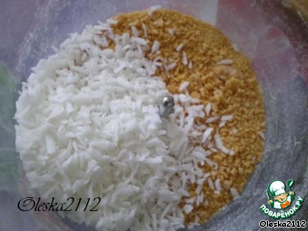 Кукурузные хлопья измельчаем в блендере (или другим способом). Смешиваем их с кокосовой стружкой.