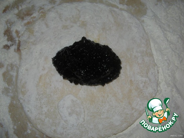 Тесто раскатываем так же тонко, как и для пирожков с картошкой. Кладём начинку.