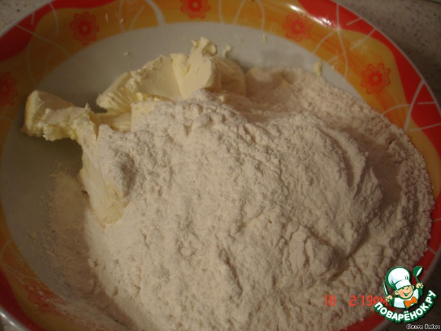 Смешать маргарин с опарой, добавить 1 стакан муки.