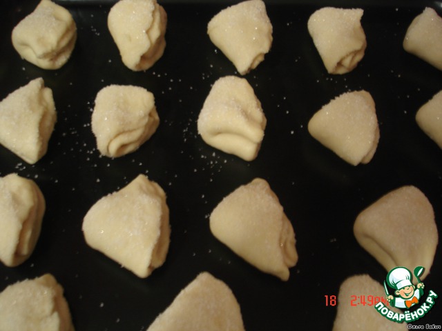 Выложить печенье на противень, присыпать сверху сахаром, дать постоять 20мин.