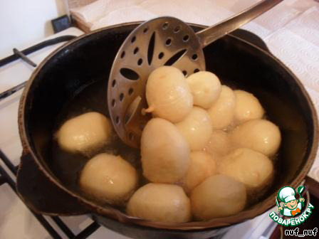 В казане хорошо разогреть масло. Поставить на средний огонь и выкладывать баурсаки по 12-15 штук за раз (в зависимости от размера казана).