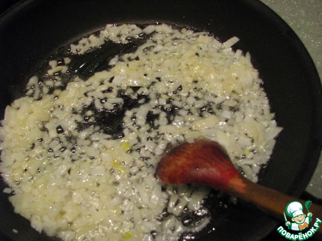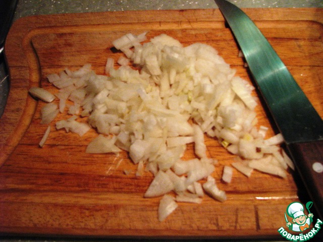 А мы тем временем займемся луком. Нарежем его достаточно мелко.