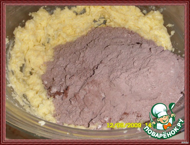 смешать просеянную муку, соль, какао (обязательно, чтобы не было комочков).