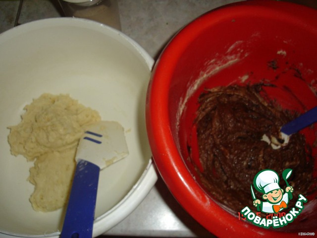 соединить два теста и перемешать слегка.чтоб цвет остался с эффектом "зебры"