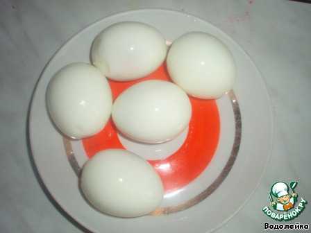 Итак, яйца отварить и почистить.