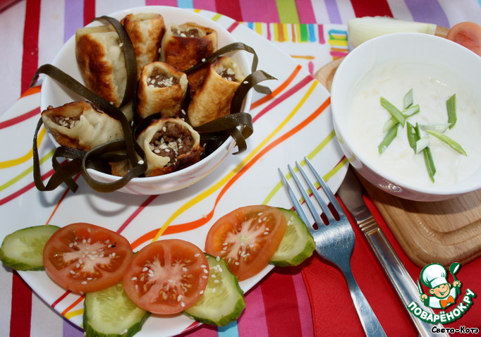 По желанию, можно посыпать семенами кунжута! Для соуса отлично подойдет сметана или кефир с чесноком! Удобнее всего бораки есть руками, макая в соус!